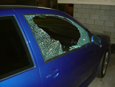 My first (and hopefully last) car to ever be broken into...Freakin' in the closed/gated parking lot of my building! And a week after I got the window replaced my aunt backed into the car.